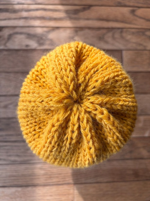 手編みによるニット帽です。 糸は太さの違う糸を2本使って、表も裏も被れるようリバーシブル使用になっています。 程よいボリューム、柔らかさ、温かさが素敵。 裏表で印象がかなり変わるのも良いですね。 ※100%ウールを使用しているので洗濯の際はウール専用での洗濯をお願いします。 手作りのため個体差がある場合がございますが、ご了承ください。