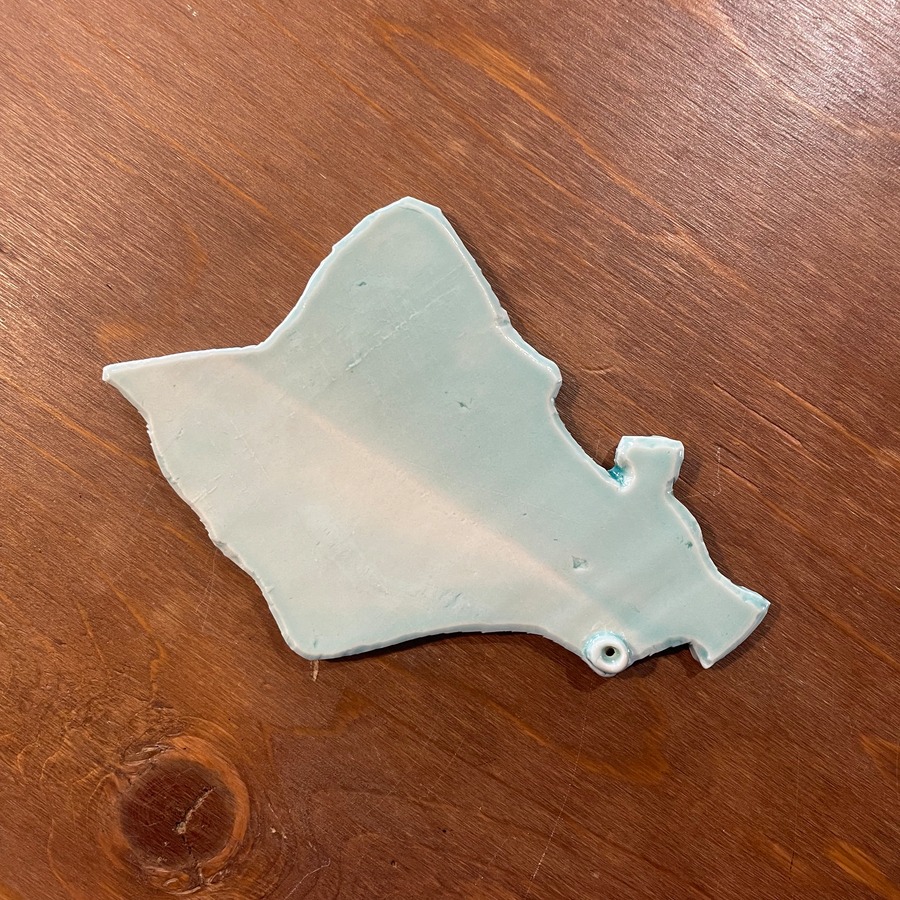 釉薬の付け具合で出された白い線状の部分は、オアフ島内の主要道路「H2」を表しています。