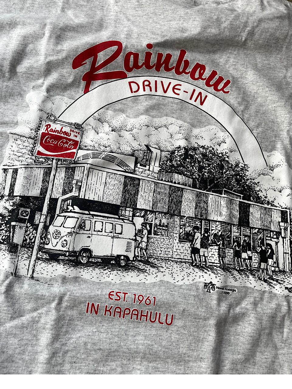 HAWAII SOUVENIRS みんな大好きRainbow Drive InのショップTee。 やはりロコモコといえばのココ。 朝から夜までずっと賑わってます。 カラー : ASH M. 着丈 71cm 身幅 48cm L. 着丈 74cm 身幅 55cm XL. 着丈 78cm 身幅 60cm